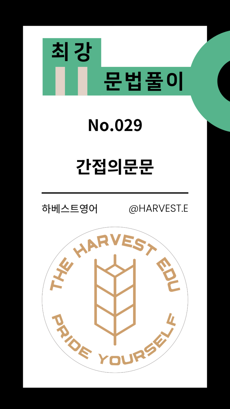 하베스트영어 진주 평거동 영어학원 입시영어 중2 [최강문법29 - 간접의문문]