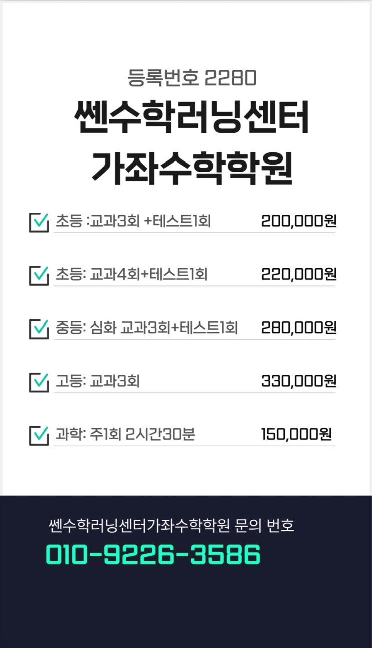 쎈수학 등록번호 / 교습비