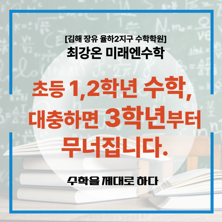 김해 장유 율하 2지구 수학학원 초등 1학년 수학, 대충 하면 3학년부터 무너집니다.