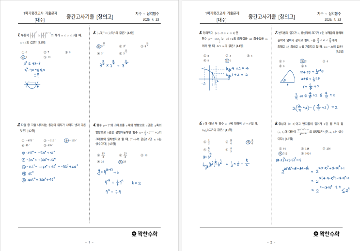 [동탄 기출] 창의고 26년도 2-1학기 중간 수학 분석 & 손풀이