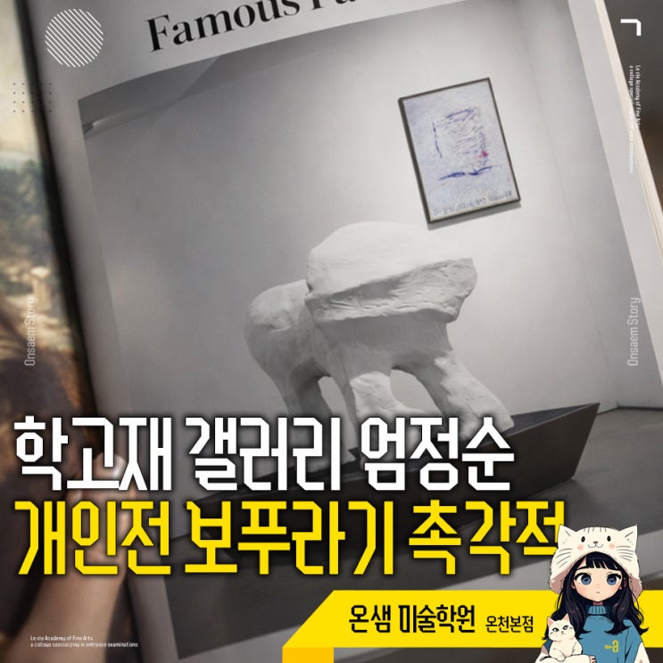 학고재 갤러리 엄정순 개인전 보푸라기 촉각적 사건 아이와 가기 좋은 삼청동 전시회 삼청동 학고재 갤러리에서 열리고 있는 엄정순 작가님의 개인전 '보푸라기-촉각적 사건'은 아이들에게 시각 너머의 감각을 일깨워줄 수 있는 아주 소중한 기회라는 생각이 듭니다. 평소 온샘미술학원 아이들이 눈으로 보이는 형태를 그리는 것에 익숙해져 있다면 이번 전시는 손끝의 감각과 신체의 움직임을 통해 세상을 새롭게 이해하는 특별한 경험을 선사할 것입니다. 3월 28일까지 진행되는 이번 전시는 무료로 개방되어 있어 가족과 함께 가벼운 마음으로 방문하기 좋으며 화요일부터 토요일까지 오전 10시부터 오후 6시 사이에 관람이 가능합....... <img src="https://blogthumb.pstatic.net/MjAyNjAzMDVfMTgw/MDAxNzcyNjc0NjI1ODkw.gz93v42QhS_0vFxdHVeLXuaQ4vNkE4_8jScHq3eCE8Ig.pqmUStDh4LjVKSVpH1xFJk-4XHWc8svxmRkmLUrzpJ4g.JPEG/%C7%D0%B0%ED%C0%E7_%B0%B6%B7%AF%B8%AE_%BE%F6%C1%A4%BC%F8_%B0%B3%C0%CE%C0%FC_%BA%B8%C7%AA%B6%F3%B1%E2_%C3%CB%B0%A2%C0%FB_%BB%E7%B0%C7_%BE%C6%C0%CC%BF%CD_%B0%A1%B1%E2_%C1%C1%C0%BA_%BB%EF%C3%BB%B5%BF_%C0%FC%BD%C3%C8%B8%26nbsp%3B.jpg?type=s3" />