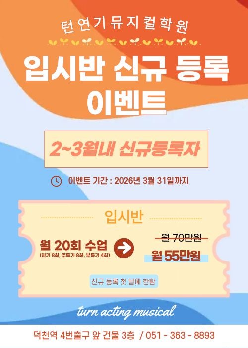 부산턴연기뮤지컬학원 입시반 신규 등록 특별 이벤트!!