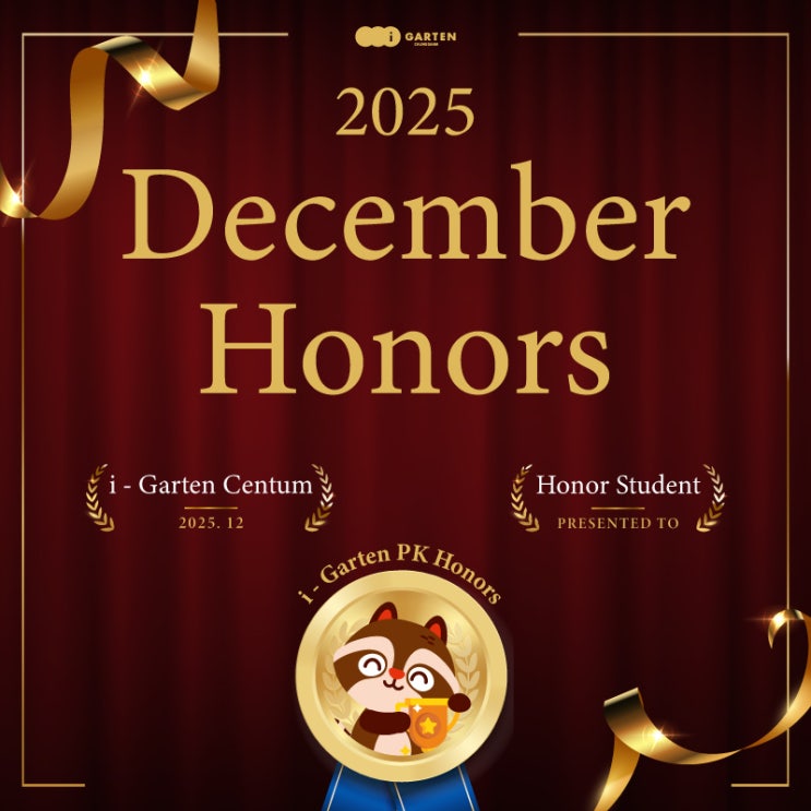 안녕하세요! 부산 해운대 센텀 청담아이가르텐 부산 센텀 어학원입니다 지난해 마지막달 12월 PK HONORS 시상식이 있었습니다~! PK HONORS 저희 원에서는 PK 8, PK 9 레벨 초등 친구들의 영어학습에 있어서 개개인의 Motivation을 더욱더 고취시키기 위해 아래의 영역에 따라 시상을 하고 있습니다. 영어학습에 있어 ✏️Review (숙제) ✏️Input (다독 + AR quiz) ✏️Vocabulary 3가지는 실력을 쌓기 위해 가장 중요한 기본 학습과정입니다. 따라서, 각 분야별로 목표 학습량을 채웠을 경우!! 원하는 스낵을 성공한 미션 수 만큼 상품으로 받게 됩니다~ 3개 영역 모두 성취했을 경우에는 청담 아이가르텐 부산센텀어학원에서 특별 제작한 뱃지....... <img src="https://blogthumb.pstatic.net/MjAyNjAxMjNfMjc5/MDAxNzY5MTQxOTkyMDAz.9JGMwXqAcN-gNNkUjZpG2UXeKED3ojMyONCwSs1luhgg.smfb-_Yvr9US8pBwxVKxPkDO-wFYQfhe7eKjwlZhqtQg.JPEG/december%29PK-Honors_%C4%AB%B5%E5%B4%BA%BD%BA1%28%BC%BE%C5%D2%29.jpg?type=s3" />