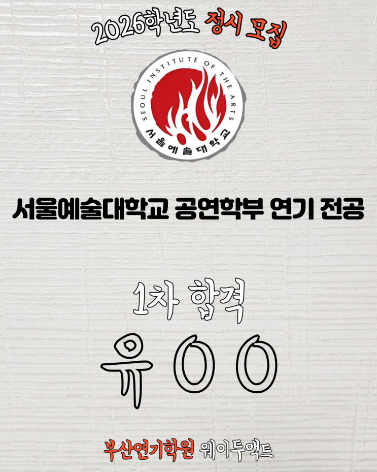 [부산연기학원] 서울예술대학교 공연학부 연기 전공 정시 1차 합격 _ 웨이투액트