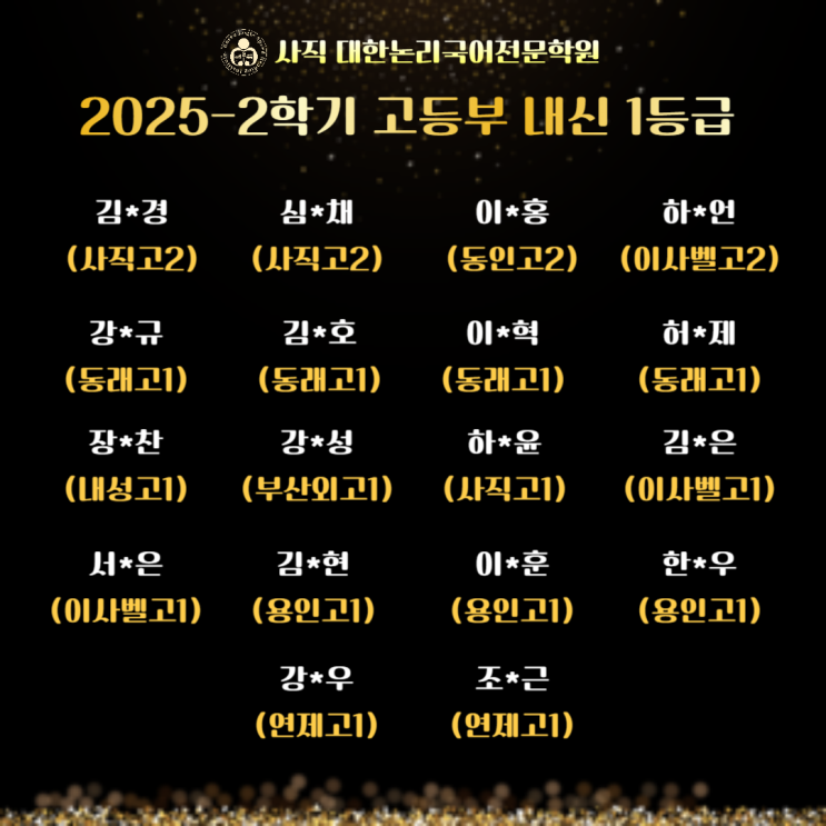 2025-2학기 고등부 1등급자 명단 | 사직대한논리국어학원