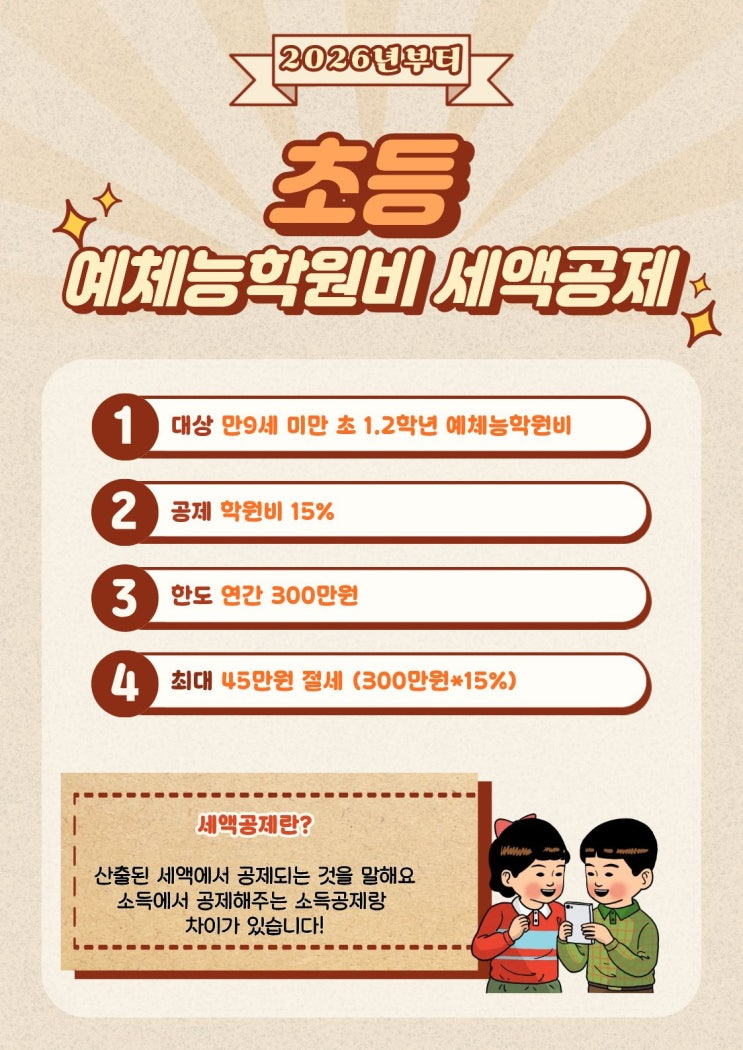 2026년부터 바뀌는 반가운 소식초등 저학년 예체능 학원비, 세액공제 됩니다