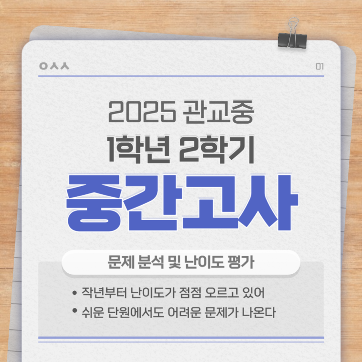 2025 관교중 1학년 2학기 수학 중간고사 시험 난이도와 문제 유형