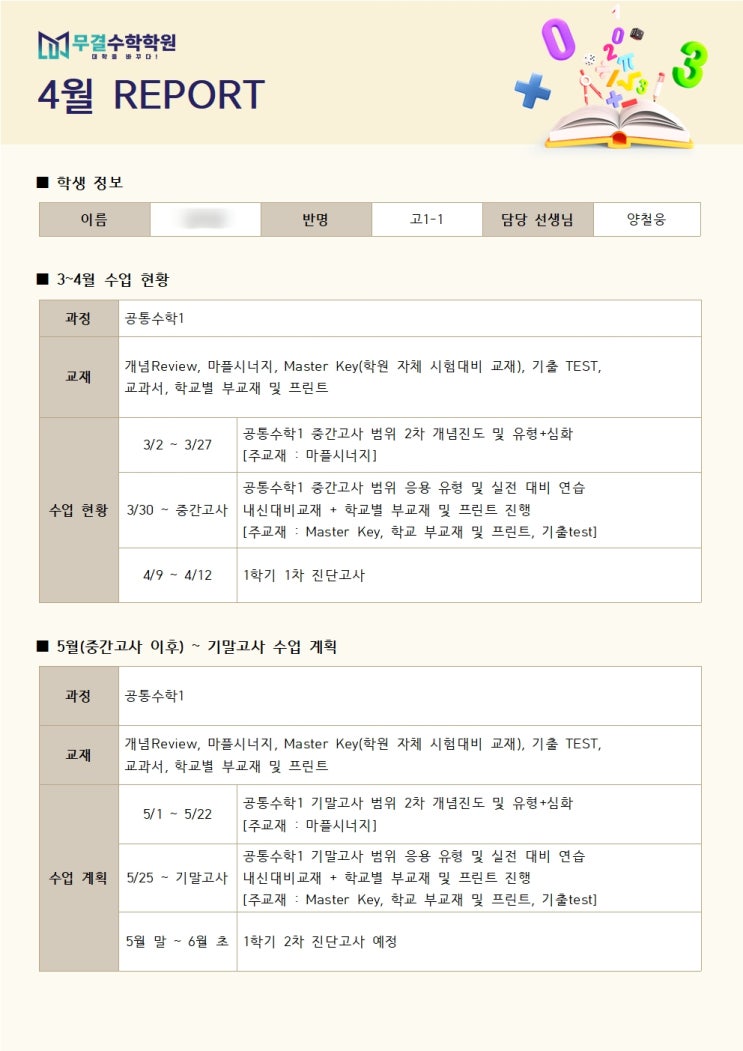 청라수학학원, 시험 결과로 이어지는 무결 리포트 시스템!
