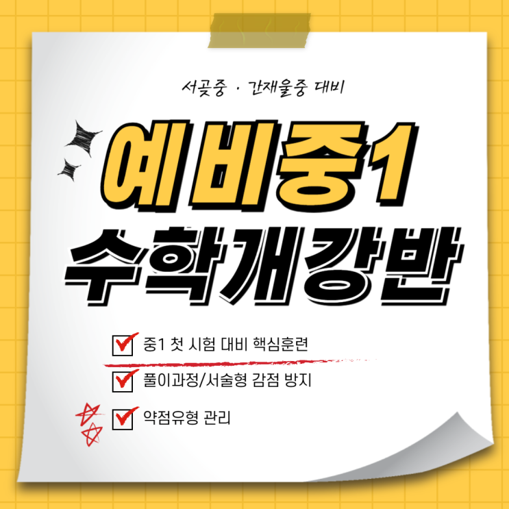 서곶중·간재울중 중1 수학, 겨울방학에 준비하면 “첫 시험”이 달라집니다 초등학교 수학을 잘했다고 해서 중학교 수학도 자연스럽게 잘하게 될까요? 현장에서 아이들을 가르치다 보면 예비중1 겨울이 가장 중요한 분기점이라는 생각이 듭니다. 초등 수학이 ‘익숙함’의 싸움이었다면, 중학교 수학은 이해하고 설명하고 연결하는 힘이 필요해지기 때문입니다. 특히 서곶중·간재울중으로 진학하는 예비중1 학부모님들께서 상담에서 많이 하시는 말이 있어요. “공식은 아는데, 왜 적용을 못하죠?” “문제만 길어지면 손을 못 대요.” “풀이과정 쓰는 걸 너무 싫어해요.” 이건 아이가 부족해서가 아니라, 수학 공부 방식이 아직 ‘초등 방식’....... <img src="https://blogthumb.pstatic.net/MjAyNjAyMDNfMTgw/MDAxNzcwMTI5MjcyMTg4.xZLuKuMSKP2L3qzFfwsQn0PSyF7dWLdacUo4E6Zo4p0g.mm088jvrC_oTVhjpUAleychQ7NisqqARR8o5Ql15wzMg.PNG/%BF%A5%BA%A3%BD%BA%C6%AE_se%B8%F4%C0%D4%C7%D0%BF%F8_%BA%B9%BB%E7%BA%BB-005_%283%29.png?type=s3" />