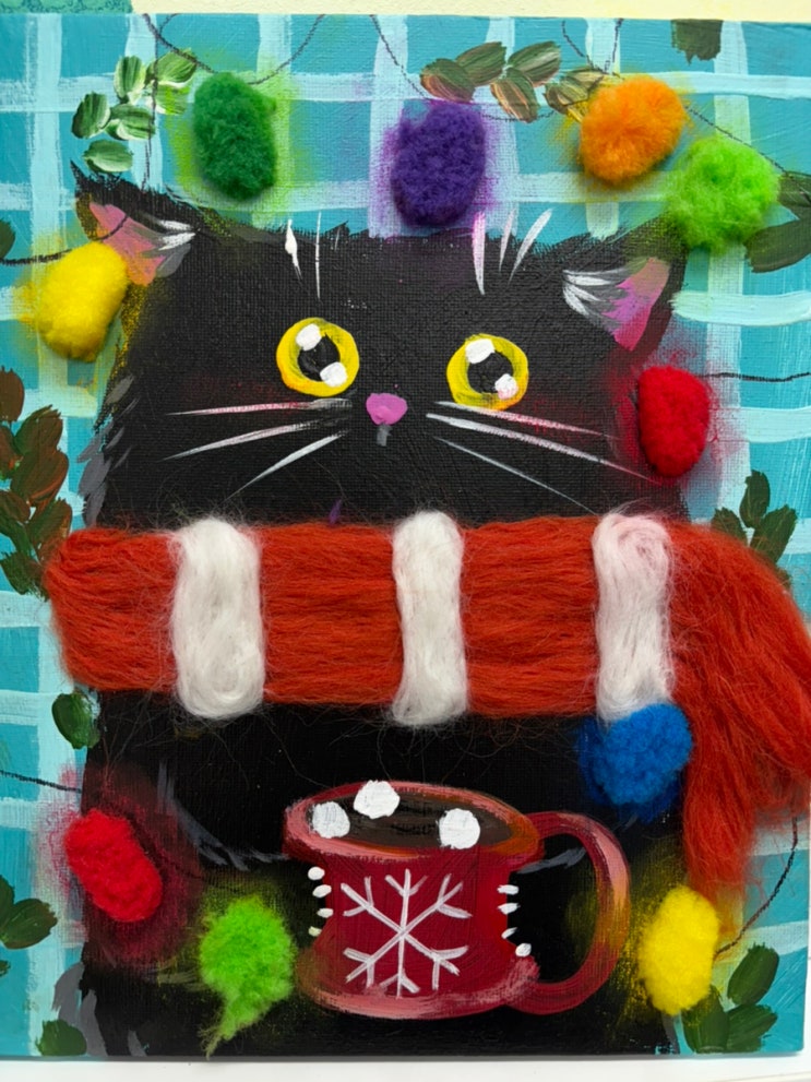 니들펠트 아크릴화 따뜻한 겨울 친구들 청라 미술학원 겨울 수업