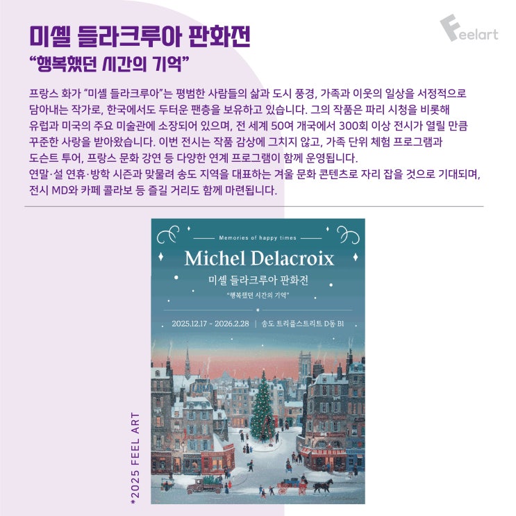 안녕하세요. 검단 필아트 미술학원 MAKI쌤입니다 미술은 단순히 그림을 잘 그리는 시간이 아니라, 아이들이 세상을 바라보고, 느끼고, 자기 생각을 표현하는 방법을 배우는 과정이라고 생각해요. 그래서 필아트에서는 교실 안 수업에만 머무르지 않고 아이들의 시선을 넓혀주는 전시 관람을 수업으로 연결한 미술 교육을 중요하게 이어오고 있습니다. 2026년 2월, 아이들과 함께 보고 이야기 나누기 좋은 전시들을 중심으로 ‘보는 경험이 그리는 경험으로 이어지는’ 필아트만의 전시 연계 수업을 소개해 드리려고 합니다. 아이의 감성과 사고력이 자라는 시간, 지금부터 함께 살펴보세요 아이에게 미술을 가르친다는 건 그림 실력보....... <img src="https://blogthumb.pstatic.net/MjAyNjAyMDVfMTk4/MDAxNzcwMjc1Njg0Njc2.E2A-z3sH-FYmwePUjNLM_JRkKrJJoRxweZvrSk1dGBgg.zKggDDX2XKagP3KSslT6wQgTJN55fUdH6f4f6tHk3ucg.JPEG/24x-100.jpg?type=s3" />