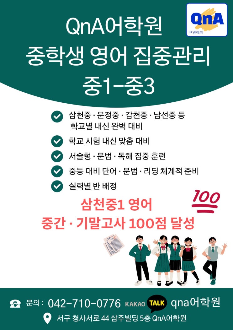 QnA어학원 중등부 모집 (중1 ~ 중3)