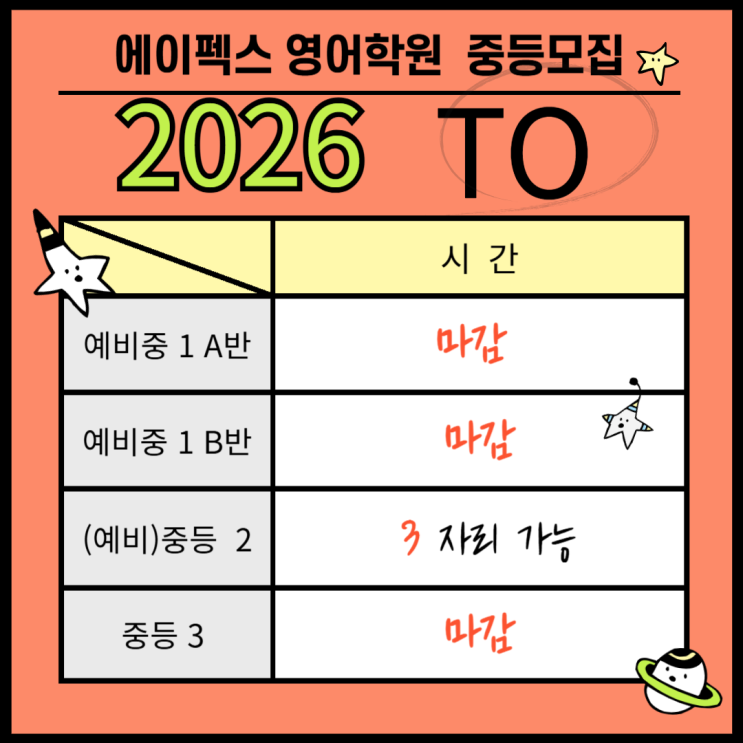 안녕하세요 ^^ 바른 영어교육의 정점 에이펙스 영어 학원 입니다. 시험대비로 바쁜 이맘 때 . 학년과 학기가 마무리 되어감에 앞으로의 공부가 고민이신 중학교 학부모님들을 위해 에이펙스의 정원 오픈 소식을 알려드립니다 현재 중등 2학년 반 반 편성 예정이며 이 외 다른 학년의 경우 마감되었음을 알려드립니다 .. 예비 중등 2학년 더욱더 발전할 친구를 적극 모집 합니다. 상위권을 위한 반으로 편성하며 , 현재 조대여중 1학년 전교 2등, 살레여중 1학년 반 1등 , 등으로 구성되어 상위권 진입이 필요한 학생과 그 학습에 더욱 체계적으로 다가 갈 학생들을 모집합니다 이제는 바른 학습을 향해 가야하는 때 ! 학습 방향성은 올바르게 가....... <img src="https://blogthumb.pstatic.net/MjAyNTEyMTFfMTk4/MDAxNzY1NDI2NDA2MjYz.vuFxNT7PFoRJKR6TXA3MLzquW6ZzEzTE1RUeqzxHekMg.w-etbn0Gg3CFg0Sgmu0T500AN_FA5uky3fj9fCyXmxcg.PNG/001.png?type=s3" />