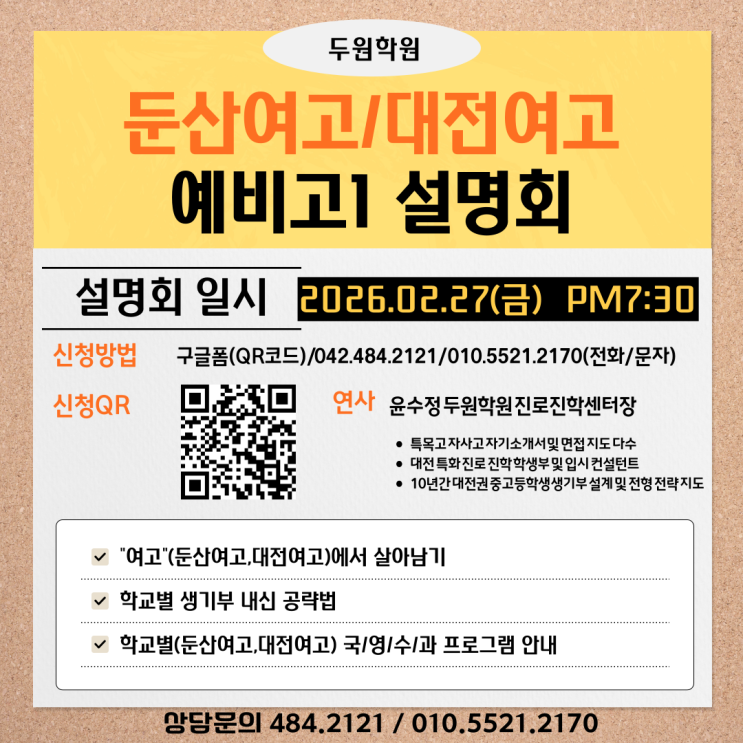 [두원학원]대전여고 둔산여고 예비고1 설명회(2/27(금) PM7:30)