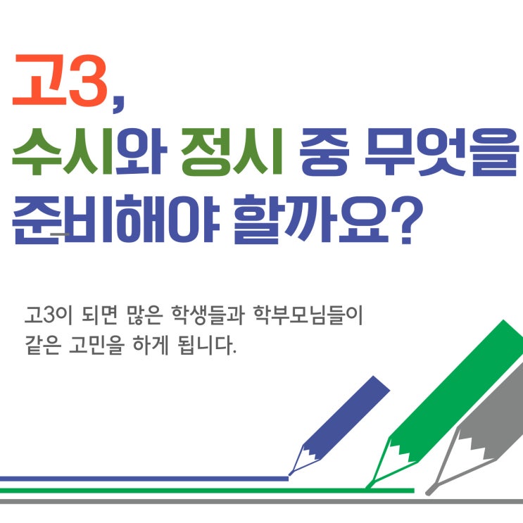 고3, 수시와 정시 중 무엇을 준비해야 할까요? 고3이 되면 많은 학생들과 학부모님들이 같은 고민을 하게 됩니다. 고3이 되면 많은 학생들이 고민합니다. 수시에 집중해야 할까 정시를 준비해야 할까 하지만 입시 현실은 조금 다릅니다. 그래서 고3은 한 길만 준비하기보다 수시 + 정시 투 트랙 전략이 필요합니다. 내신을 끝까지 준비한 학생들이 정시에서도 흔들리지 않는 실력을 보여줍니다. 수시 내신 + 정시 대비 국어 · 영어 · 수학 · 생명(탐구) 고3에게 가장 중요한 시기 내신과 수능을 함께 준비합니다 청강은 누구나 참여할수 있습니다. 고등국어, 고등수학,고등영어, 고등과학탐구(생명) 수업을 1회 청강할수 있는 기회를 드립니다. 다....... <img src="https://blogthumb.pstatic.net/MjAyNjAzMTRfMTEy/MDAxNzczNDgwMTAxODk1.DwAN9bVXQ5KogufbEGaquX5_5FFKZPHSBqhJQqP7Ec4g.2wtdV3depfF5ayEPfVJR1EbhGIig-5zsOOY-8Xrowqwg.JPEG/001.jpg?type=s3" />
