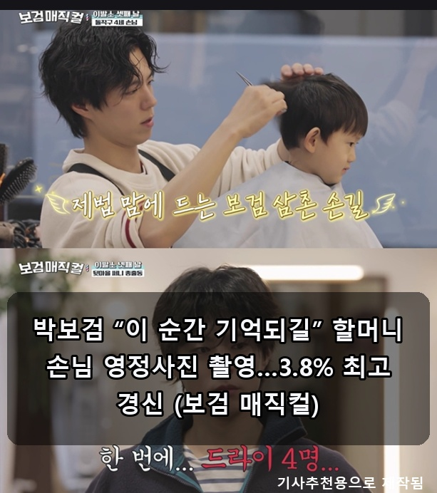 따뜻한 감동과 현실적인 공감을 선사하는 두 편의 이야기가 준비되었습니다. 먼저, tvN 예능 프로그램 '보검 매직컬'은 자체 최고 시청률 3.8%를 경신하며 시청자들의 뜨거운 관심을 받았습니다. 박보검 씨가 할머니의 영정사진을 촬영하며 흘린 눈물은 단순한 재미를 넘어 삶의 가치를 되새기게 하는 깊은 감동을 선사했습니다. 이어, 가수 선예는 KBS 2TV '신상출시 편스토랑'에 출연해 14년차 주부이자 세 딸의 엄마로서의 일상을 공개했습니다. 국민 걸그룹 리더에서 이제는 워킹맘으로 살아가는 그녀의 따뜻한 집밥 레시피와 가족 이야기는 시청자들에게 현실적인 공감을 불러일으켰습니다. 박보검 “이 순간 기억되길....... <img src="https://blogthumb.pstatic.net/MjAyNjAyMjhfNjAg/MDAxNzcyMjYzMjcyODMy.ZCX4ywxJ8G0CYBLkxXePpf7Rl8ypOH3rSBenD9ZUeyUg.uWYXpLdPpisMK3LYRfSOT6j03-Ta4luQR20qn1GdsSwg.PNG/image.png?type=s3" />