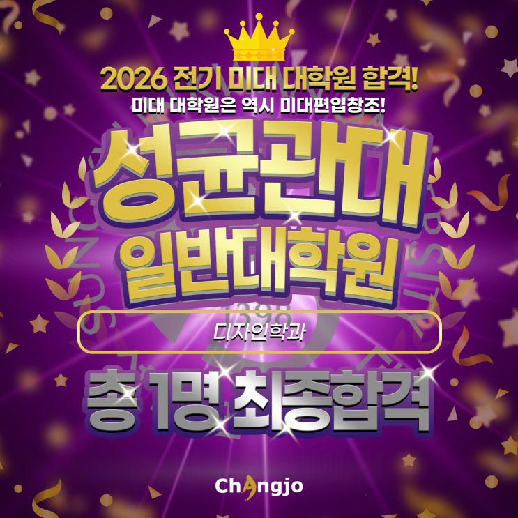 안녕하세요, 미대 대학원의 합격 결과를 증명하는 미대편입창조 홍대캠퍼스입니다! 오늘은 2026학년도 전기 대학원 입시에서 들려온 매우 기쁜 소식을 전해드리려고 합니다. 성균관대학교 일반대학원 디자인학과에 우리 미대편입창조의 원ㅇㅇ 학생이 당당히 최종 합격했습니다! 진심으로 축하드립니다! 성균관대학교 일반대학원 디자인학과는 전형 요소에 맞춘 치밀한 준비가 필수적입니다. 원ㅇㅇ 학생의 합격 소식과 함께 성균관대학교 일반대학원 디자인학과 모집요강을 같이 살펴보겠습니다! 2026학년도 전기 성균관대학교 일반대학원 디자인학과 "원00 최초합격" 합격 분석: 성균관대학교 일반대학원 디자인학과 지....... <img src="https://blogthumb.pstatic.net/MjAyNjAxMjRfNDYg/MDAxNzY5MjMzOTk2Mzcw.9MghcrjoyFej_470KX_7mJkfU0-4Vr85uFpLtvQMZ7Ig.XboL3gZB5r3ZY488AZ9CvF7-_HMJls7rUYjKNiFmS6sg.JPEG/%BC%BA%B1%D5%B0%FC%B4%EB_%C0%CF%B9%DD%B4%EB%C7%D0%BF%F8_%C3%D1_%C7%D5%B0%DD.jpg?type=s3" />
