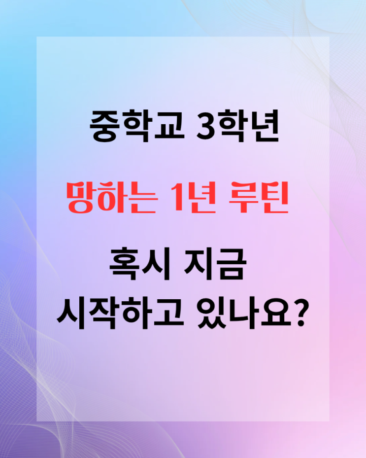 중학교 3학년이라면 긴장하세요!!! 안녕하세요. 목포 에이탑 학원 수진쌤입니다. 벌써 3월이고 벌써 개학이고 벌써 새 학년이죠? 특히 지금 중학교 3학년인 학생들은 요즘 무슨 생각을 하나요? 혹시 벌써 부터 고등학교 공부를 생각하고 있는 학생이 있나요? 중3의 시기를 단순히 중학교 과정의 마무리라고 생각하면 안됩니다. 중3은 무조건 고등학교를 준비하는 시기로 봐야합니다. 아직도 중학교 방식의 공부를 하고 아직도 중학교 때의 공부양에 만족하고 아직도 중학교 성적에 만족하고 있다면 우리 학생은 1년 후 무시무시한 결과물을 받고 그때 충격을 받고 후회를 할 것입니다. 중3이 망하는 루틴 1 “일단 내신만 잘 보자” 중3 영어 내....... <img src="https://blogthumb.pstatic.net/MjAyNjAyMjhfMTAw/MDAxNzcyMjQwMjg5NzAw.ykO5VZzkdg0lXlvHvUOY13lZY-4BHDEZtR7i_otWbywg.q_tDWjKOSxvuAFLeu3RyITeHpV8kdwXQTJgpy9XedsUg.PNG/900%A3%DF%C1%DF3_%B8%C1%C7%CF%B4%C2_1%B3%E2_%B7%E7%C6%BE%A3%DF20260228%A3%DF093037%A3%DF0000.png?type=s3" />
