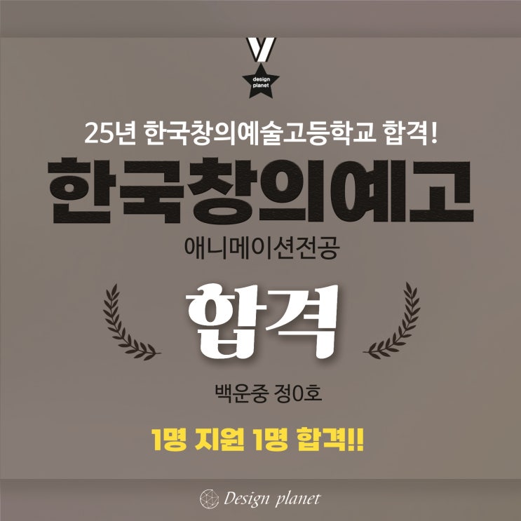 [광양입시미술학원] 25년 한국창의예고 100% 합격!! 1명 지원, 1명 합격!