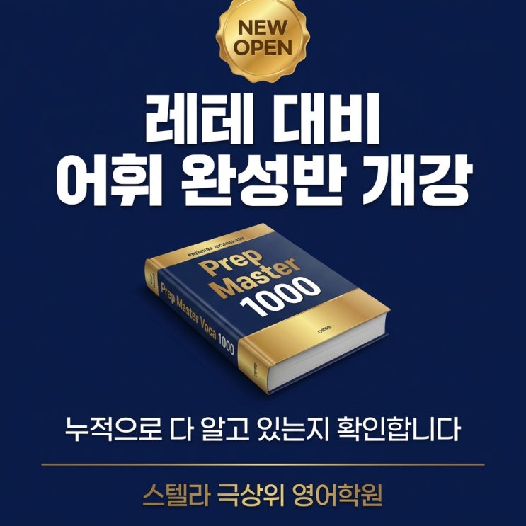 대치동 레테 대비 어휘 완성반 레테 필수 어휘 1000, 이제 누적으로 완성하세요 레테 대비, 결국 어휘입니다 대치동에서 유명 어학원 레벨테스트(레테)를 준비하는 학생들에게 공통적으로 필요한 것이 있습니다. 바로 어휘력입니다. 대치동 주요 어학원의 레테를 준비하는 과정에서 어휘는 빠질 수 없는 핵심 요소입니다. 그래서 레테 대비 어휘 완성반을 진행하게 되었습니다. 프로그램 이름은 Prep Master Voca 1000 (프렙 마스터 보카 1000) 입니다. 혹시 이런 경험 있으신가요? "분명히 외웠다고 했는데, 막상 시험 보면 모른다고 해요." "단어 공부를 꾸준히 시키는데, 실력이 느는 게 느껴지질 않아요." ?....... <img src="https://blogthumb.pstatic.net/MjAyNjAzMTVfMTYw/MDAxNzczNTcwOTI5Njg0.nYimPm1BA8ClZJ5BW5rrhOmcTOsh3OSFZN1qOZTTBB8g.8x4T_IAG_lbLPF1yOxJ40bM6qFMTgAu4bpYEl6NtF6Ag.JPEG/card_01.jpg?type=s3" />