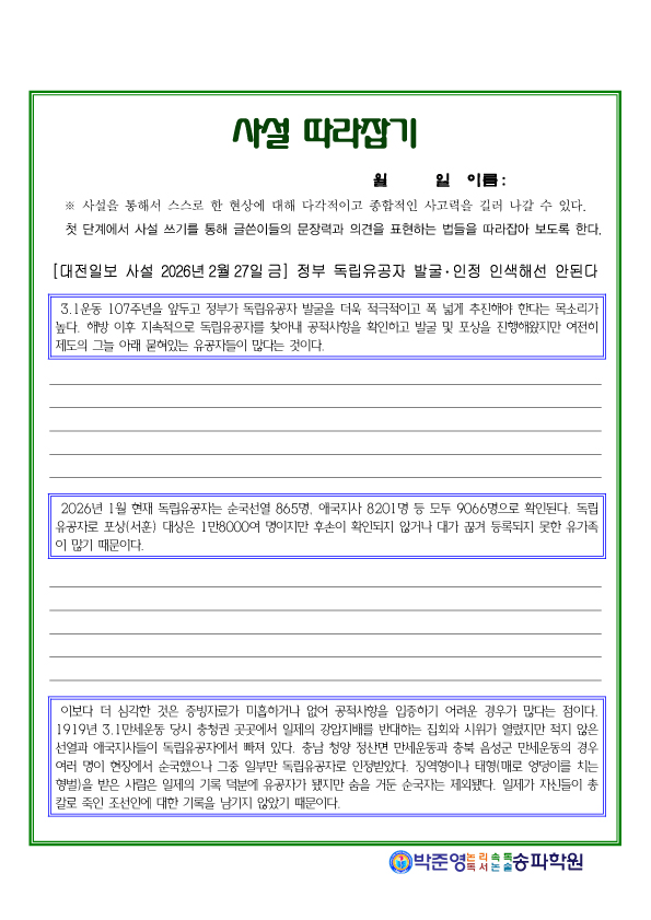 2026년 2월 27일 사설 과제