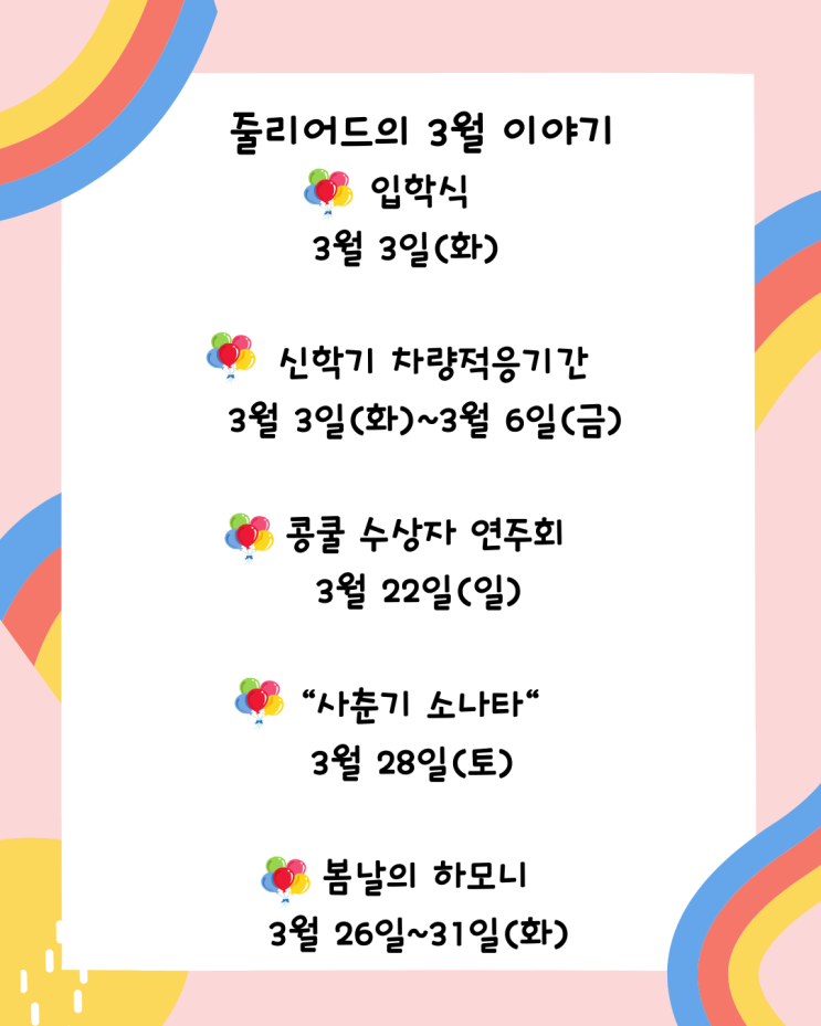 물금 증산 피아노 줄리어드음악학원의 3월 이야기