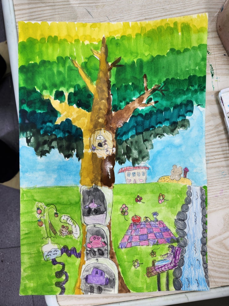 안녕하세요~^^ 오늘은 수채화를 들고 와봤습니다 기초 수채화 시작해볼게요! 위 사진에 있는 것처럼 각 칸에 맞춰서 색깔을 섞어보기도 하고, 농도를 맞춰서 채색을 해줬습니다~ 하지만! 이것만 하면 실력이 안늘겠죠!? 그래서 다른 작품도 진행을 했답니다 나무를 스케치를 해줬습니다~ 이때 나무를 어떻게 그려야 멋지게 나오는지 설명 후에 진행했습니다 그다음은 앞에 보여드린 작품과 같이 색을 차근히 채색만 하면 끝!! 어떻게 완성이 됐는지 볼까요? 평범한 나무가 너무 멋지게 변신했죠!? 멋진 친구들의 작품을 다음에도 소개해 드릴게요~^^ 스텝 아트 미술 교습소는 각자의 개성을 존중하며 수업을 진행합니다. 수업 중 상담은 힘들 수....... <img src="https://blogthumb.pstatic.net/MjAyNjAzMDVfMjMx/MDAxNzcyNjQ0OTUzNzkw.v4LCHQKdcl5aEPkXRJLXLUWv5XOqBXQ4NucW3exFpcAg.KHEXlvH0zaZRdeKcWiYHLizRSiL5QT2HPqKvzHIcd84g.JPEG/20251202_170212.jpg?type=s3" />
