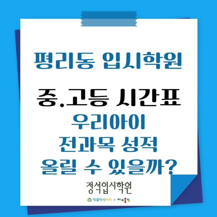 평리동입시학원 평리동영어학원 평리중입시학원 평리동영어학원 평리동수학학우너 평리동전과목 서구청입시학원 강사진들의 꼼꼼한 전과목 내신 관리로 성적 향상을 만듭니다. 중학교, 고등학교 시기는 아이들의 학업 방향이 결정되는 매우 중요한 시기입니다. 단순히 문제를 많이 푸는 것이 아니라, 학교 수업을 정확히 이해하고 시험에 맞게 준비하는 전략이 필요합니다. 우리 정석입시학원은 꼼꼼한 전과목 내신 관리, 성적 향상 보장 시스템, 그리고 경력 있는 강사진의 밀착 지도를 바탕으로 중·고등 학생들의 성적을 체계적으로 관리하고 있습니다. 오늘은 우리 학원의 시간표 구성과 함께 교육 방향을 안내드립니다. 중 고등부 시간표 운....... <img src="https://blogthumb.pstatic.net/MjAyNjAyMjdfMjY5/MDAxNzcyMTc0NzI2OTY1.hvYOUX23DZbsy3GYfs3aDhKqXKTe2AKn2x0ugSLn3QYg.LKT471MekOBdgLQnKcenvalyXJMAzvxYYx5j2-uRmX4g.JPEG/%C1%A6%B8%F1%C0%BB_%C0%D4%B7%C2%C7%D8%C1%D6%BC%BC%BF%E4._%283%29.jpg?type=s3" />
