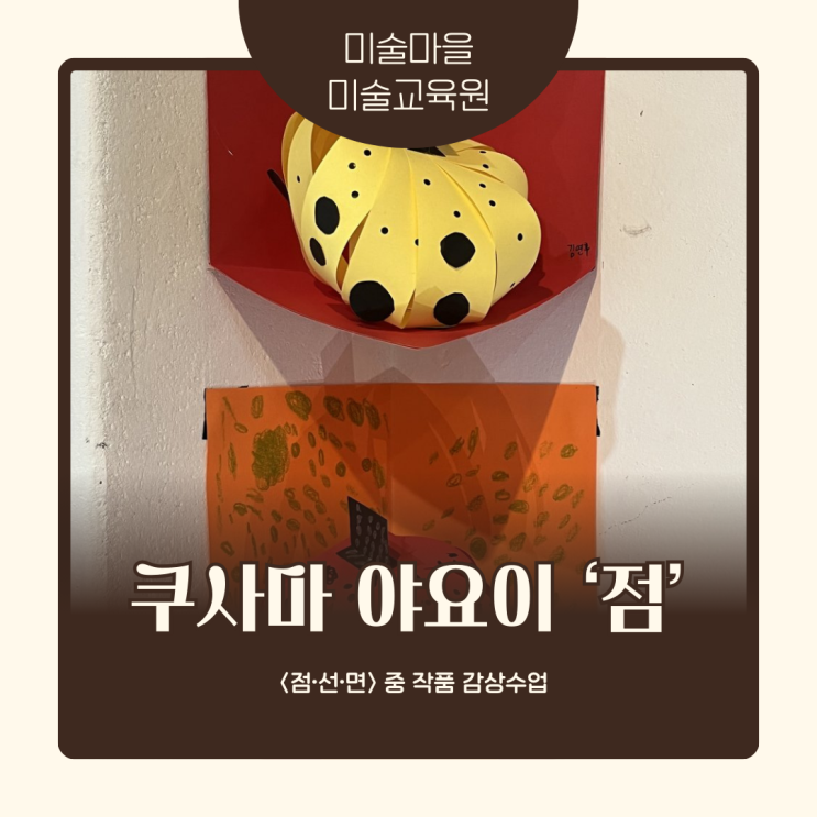 안녕하세요 >.< 아이들의 꿈이 자라나는 공간 미술마을 박원장입니다. 활기찬 2026년의 시작, 미술마을 아이들은 벌써 창의력 에너지를 가득 채우고 있답니다. 작은 점 하나가 모여, 아이의 커다란 세계가 됩니다. [Artist Intro] 현대미술의 거장, 쿠사마 야요이를 만나다. 이번 미술마을 커리큘럼의 주인공은 세계에서 가장 영향력 있는 예술가 중 한 명인 '쿠사마 야요이(Kusama Yayoi)'입니다. 단순히 점을 찍는 작가가 아니라, 자신의 내면을 예술로 승화시킨 '치유의 예술가'임을 소개하며 수업의 깊이를 더합니다. "우리 아이들은 작가의 삶과 예술을 통해 '점'이....... <img src="https://blogthumb.pstatic.net/MjAyNjAzMDJfMTMg/MDAxNzcyNDI4MzU1OTYw.LmxnO1MpfgxJT99nSGnShtixrOT75b4Bzdv0hSK90BIg.uJ2Ea5Gx8opH4c2rMuxUCRYD92kL1HhWpI6NzMAoW1Eg.PNG/%C4%ED%BB%E7%B8%B6%BE%DF%BF%E4%C0%CC.png?type=s3" />