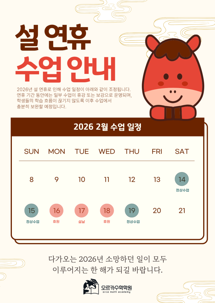 [광주/수학] 광주 북구 운암동 수학학원 「오르카수학학원」 설날 연휴 휴무 안내