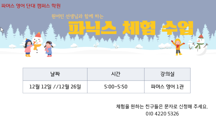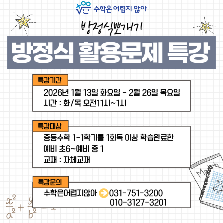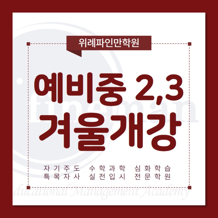 [위례파인만] 중등부 수학 겨울학기 & 방학특강 프로그램 개강 안내