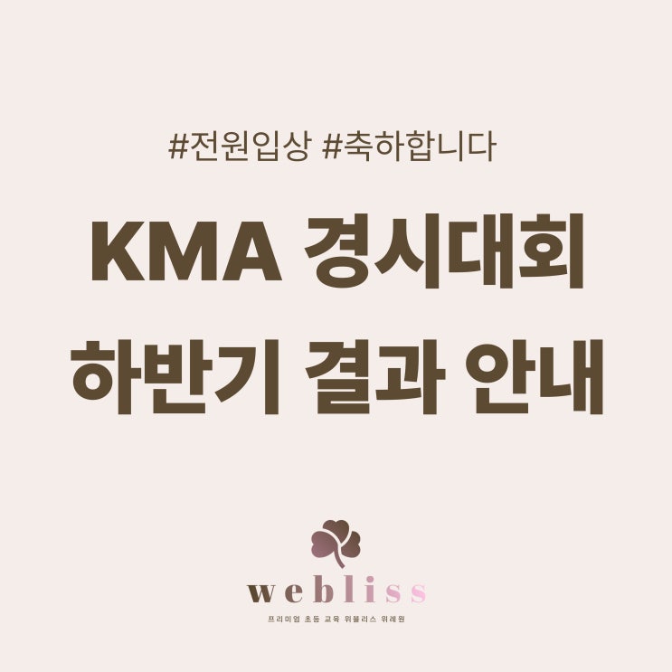 안녕하세요, 위례 창곡동 초등수학학원 위블리스입니다. KMA 경시대회 하반기 결과를 안내해 드립니다. 올해 2025년 KMA 경시대회 하반기 결과는 1학년 평균 63.3점 2학년 평균 68.7점으로 평균이 예년에 비해 8~10점가량 뚝 떨어질 정도로 저학년에서 난이도가 급상승하며 어렵게 출제된 시험이었습니다. 시험 정보와 총평을 먼저 확인해 보세요! ↓↓↓ 어려운 시험이었기에 더욱 빛나는 KMA 경시대회 하반기 결과! 이번 시험 점수는 받은 점수에서 최소 5~8점 정도를 높인 것이 실제 실력에 맞는 점수라고 볼 수 있습니다. 그만큼 어려운 시험이었어요. KMA 경시대회 하반기 결과에서 초등 저학년 학생들이 특히 어려웠던 이유는 기존 2학년 문....... <img src="https://blogthumb.pstatic.net/MjAyNTEyMTBfMTY4/MDAxNzY1MzY2MTgwMDgw.RRPguM-PcdBh4-1w69ztOmiQRvdSIT5xDIwkvPts1qkg.rT85AHbjqTSiDdI6l9KamkvtSfe4DXERJF8N_golTSEg.JPEG/%26nbsp%3BKMA%26nbsp%3B%B0%E6%BD%C3%B4%EB%C8%B8%26nbsp%3B%C7%CF%B9%DD%B1%E2%26nbsp%3B%B0%E1%B0%FA_%C0%A7%B7%CA%26nbsp%3B%C3%A2%B0%EE%B5%BF%26nbsp%3B%C3%CA%B5%EE%BC%F6%C7%D0%C7%D0%BF%F8%26nbsp%3B%C0%A7%BA%ED%B8%AE%BD%BA%26nbsp%3B%BE%C6%BF%F4%C7%B2.jpg?type=s3" />