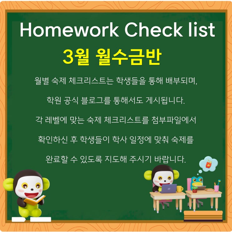 3월 월수금반 숙제 체크리스트