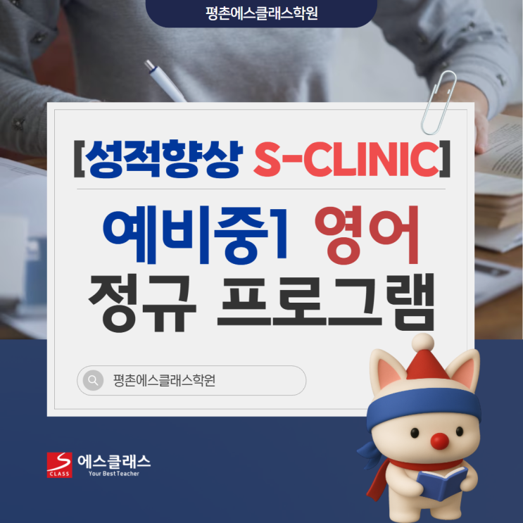2026 중1 영어 정규 프로그램 안내 초등에서 중등으로 넘어가는 시기는 그저 ‘쉬는 시간’이 아니라 실력 격차가 만들어지는 결정적 시기입니다. 중학교 입학 전 기본과 필수를 다져놓지 않으면, 다가오는 새학년 실전 시험들에 치이기 쉽습니다. 평촌학원가 에스클래스학원에서, 중학 생활의 거대한 도약을 이끌 예비중1 영어 정규 프로그램을 개강합니다. 프로그램 주요 특징 수준별로 섹션별 전문 선생님(문법/독해/어휘/말하기/영작 전문 선생님 3~4명)이 지도합니다. 일회용 문제풀이를 위한 단편적인 기술을 가르치지 않습니다. 언어의 형식, 의미, 활용 (form, meaning, usage)을 통한 평생 동안의 기본기가 되는 영어의 본질을 가르칩니....... <img src="https://blogthumb.pstatic.net/MjAyNTEyMDlfMTYg/MDAxNzY1MjcyMjE5MzQ4.5YmZbJLLfSOvFFTxkhBNNTuR4FxFe7vpMjK7rvvshs8g.y2Pc6Mqk12z1QI4eNbZC1CdlOEIBV3nN7fJkZHrgkQwg.PNG/%B3%BB%BD%C5%BA%D0%BC%AE_%2887%29.png?type=s3" />