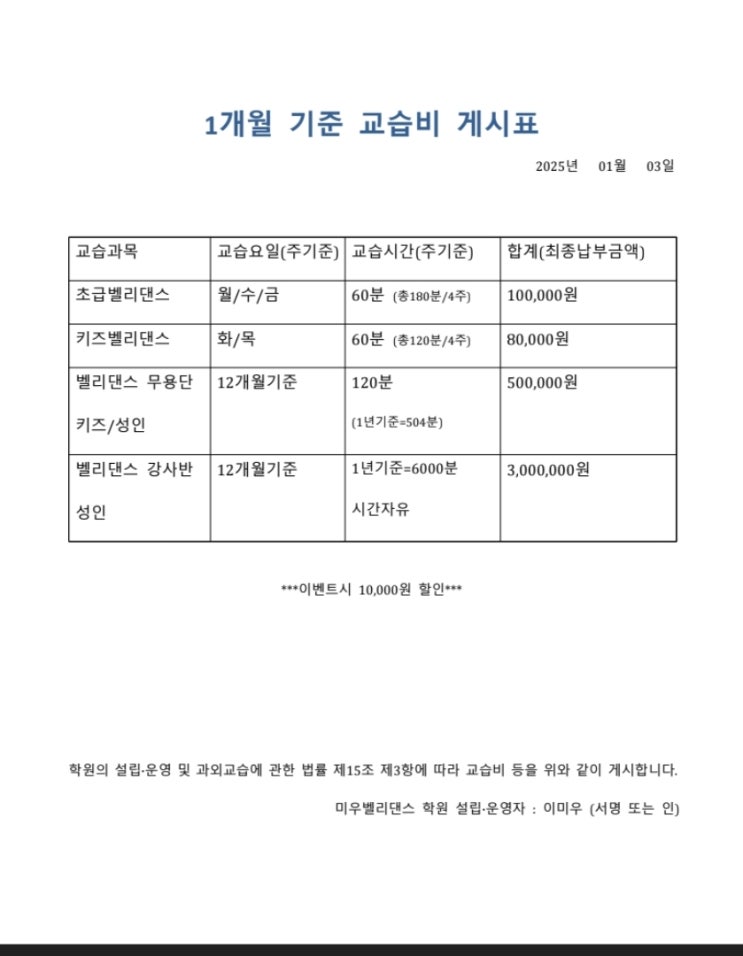 교습비게시표