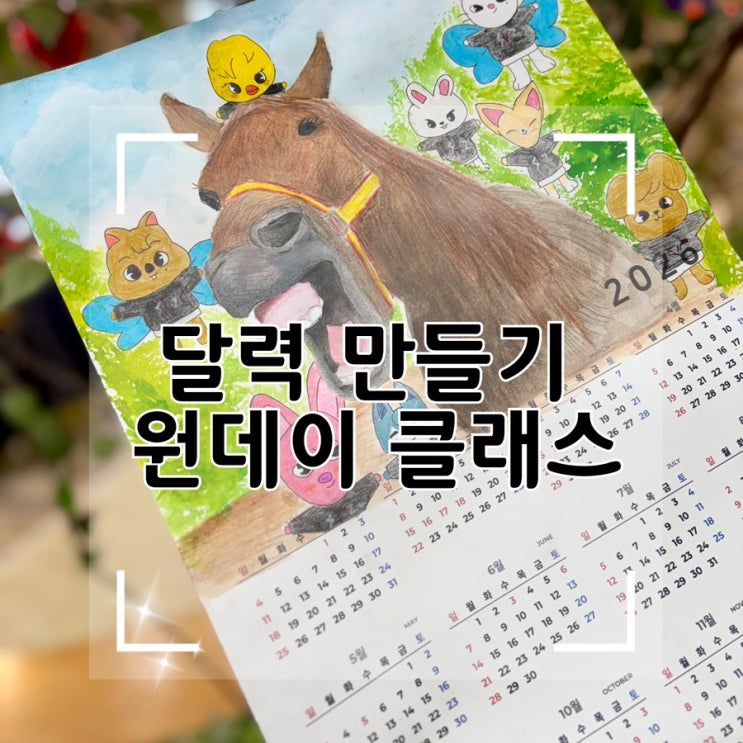 달력 만들기 원데이 클래스 오픈 안녕하세요 ^^ 달력 위에 말을 그려보는 특별한 미술 수업이에요 6세부터 중등 친구들까지 참여 가능하고, 미술이 처음인 아이들도 선생님이 옆에서 차근차근 도와줘서 누구나 멋진 나만의 작품을 완성할 수 있어요 ♡♡ 수업 시간 매주 토요일 오후 3시 ~ 4시 (총 1시간) (아이의 속도에 따라 조금 더 진행될 수 있습니다) 수업 방식 소수정예 1:4수업으로 꼼꼼하게 지도합니다 수강료 원데이 클래스 2만원 예약 수업으로 진행됩니다 수강을 원하시는 분은 아래 번호로 아이 이름 / 나이 / 수강 가능한 날짜를 적어 문자 메시지로 보내주세요 ☺️ 010-3292-6007 아이의 상상....... <img src="https://blogthumb.pstatic.net/MjAyNjAxMjZfMTk1/MDAxNzY5NDA3OTU1OTkw.RO0mLCq_P8_LKwbOwLq2-s9ixOVmQNHf9rUSAA-R-nUg.3Nb88flHf_PpwqqIo5mcD9Bd4vPxWIUK6NUOgkxKnR4g.JPEG/IMG%A3%DF1175.JPG?type=s3" />