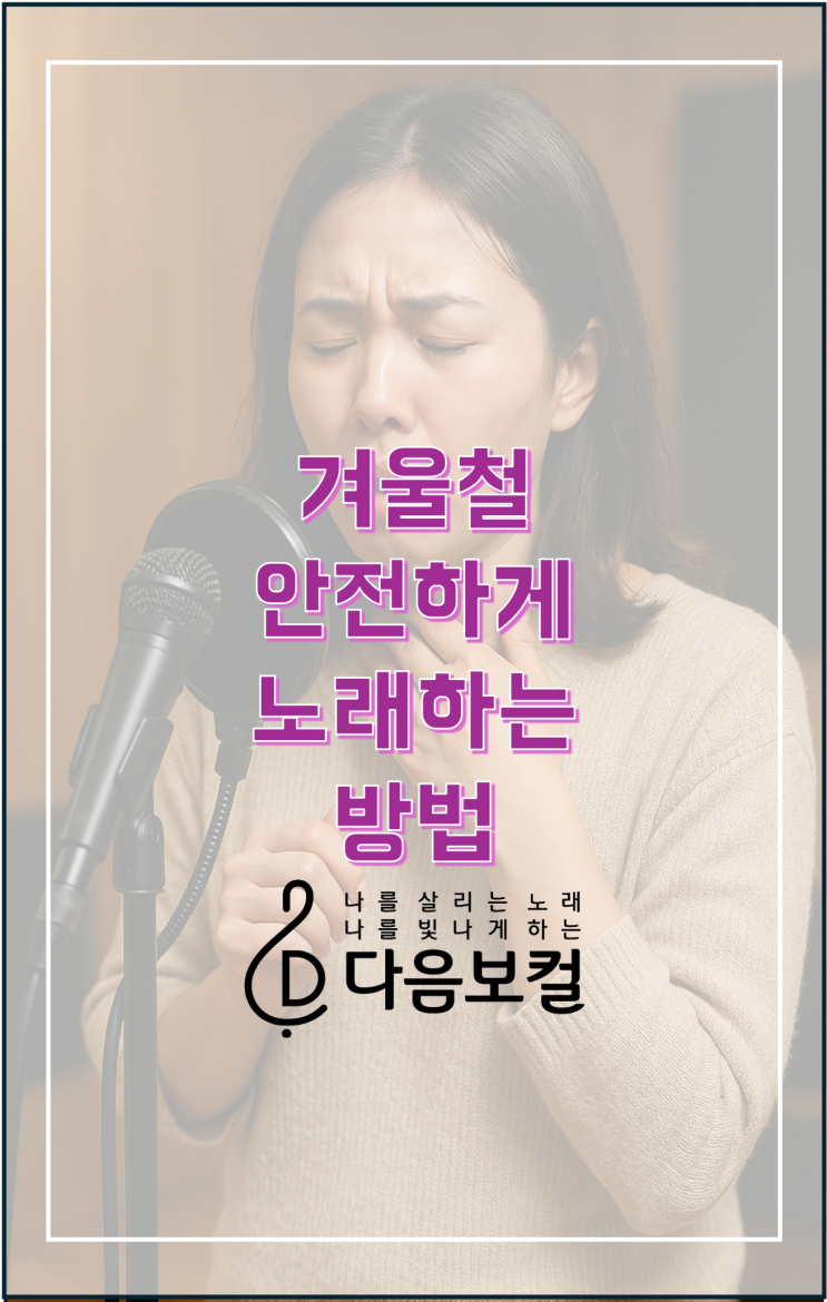 겨울철 목관리 & 성대 보호하면서 안전하게 노래 연습하는 법 안녕하세요, 별내 보컬학원 다음보컬입니다 겨울이 되면 별내·남양주·갈매·다산 인근에서 보컬레슨을 받으시는 많은 분들이 “겨울철 목관리 어떻게 해야 하나요?”, “성대가 자꾸 잠기는데 노래 연습해도 괜찮나요?” 라는 고민을 자주 상담해 주십니다. 겨울은 건조하고 온도 차가 심한 계절이라 성대가 쉽게 예민해지지만, 반대로 기초 발성을 안정적으로 다질 수 있는 가장 좋은 시기이기도 합니다. 오늘은 다음보컬에서 실제로 적용하는 겨울철 보컬레슨이 어떻게 운영되는지, 성대 보호 팁, 안전한 발성 루틴을 자세하게 안내해 드릴게요! ✅ 겨울철 목관리가 중요한....... <img src="https://blogthumb.pstatic.net/MjAyNTEyMDlfMTUw/MDAxNzY1MjgwMjU4MzE2.PkmxawYoLgWh88O0Hm6rKBR0fsYZw16kG374hB2S_zsg.IBLTiiVFuXUfryvBZhq8K90hIGG5kaM3GlD6J5JwDtwg.PNG/%B0%DC%BF%EF.png?type=s3" />