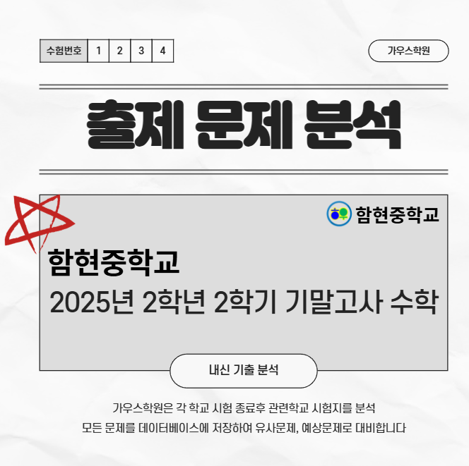 정왕동 수학학원 영어학원 I 함현중학교 2025년 2학년 2학기 기말고사 수학 기출 분석 I 영수학원 추천후기리뷰