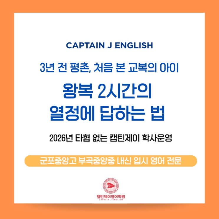 1."혹시나 해서 연락드려 보았습니다" 어제 오후, 학원에서 버스로 30분이나 걸리는 학교의 학부모님으로부터 한 통의 문자를 받았습니다. 이미 대기가 있다는 소문을 들으셨음에도 '혹시나' 하는 간절함으로 연락을 주신 학부모님 하지만 관리 범위 밖의 학교라 도움을 드리기 어렵다는 답장을 보내고 나니, 3년 전 평촌 최선어학원의 복도에서 마주쳤던 한 아이가 떠올랐습니다. 2. 낯선 교복, 그리고 "부곡중앙중이요" 당시 저는 800여 명의 중3 학생 중 최상위 레벨 반들을 전담하고 있었습니다. 그러다 복도에서 처음 보는 생소한 교복을 입은 아이를 마주쳤습니다. 5개 레벨 중 가장 낮은 반에 속해 있던 아....... <img src="https://blogthumb.pstatic.net/MjAyNjAzMDdfMjc4/MDAxNzcyODgzOTYxMDkz.1e490VaJxfBnr1VNytHRNeOHg3IM6hgBQe_dvUpslhEg.0fuYvYhIjAi9AFF7sr7-Ae0KPAk-tTVmwTGawk8edQcg.PNG/900%A3%DF%C6%C4%B6%F5%BB%F6_%BA%ED%B7%A2_%B9%CC%B4%CF%B8%D6%C7%CF%B0%ED_%BD%C9%C7%C3%C7%CF%B0%ED_%B1%F2%B2%FB%C7%D1_%BA%F1%C1%EE%B4%CF%BD%BA_%C4%AB%B5%E5%B4%BA%BD%BA%A3%DF20260307%A3%DF194627%A3%DF0000.png?type=s3" />