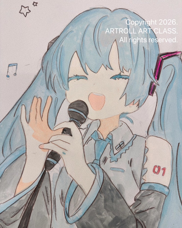 안녕하세요. 애니메이션과 캐릭터 수업도 알차게 수업하고 있는 용인 처인구 역북동 아트롤 미술학원 입니다. 봄바람이 조금씩 다가오면서 하루하루 따뜻해지고 있음을 느낍니다. 아트롤 미술학원 친구들도 따뜻한 3월 보내고 있죠? 아트롤 미술학원의 초등부 고학년 학생들은 3월 2주 차 수업으로 일러스트 수업을 하고 있습니다. 내가 좋아하는 캐릭터를 고르고, 흰색을 사용하는 불투명 수채화로 표현해 보는 시간이랍니다. 요즘 많은 친구들이 좋아하는 보컬 캐릭터인 "하츠네 미쿠"를 그린 함박초등학교 6학년 학생의 작품입니다. 노래 부르는 모습을 정말 귀엽게 잘 그렸죠? 캐릭터의 특징이 잘 나타나게 스케치를 하고, 흰색을....... <img src="https://blogthumb.pstatic.net/MjAyNjAzMTRfMjEw/MDAxNzczNDkxMDYyOTk2.MOQ6bF56OfV7c_IGOVKxwlOdky2DvEbgxBbUU6C0FGog.sT1H_DKqgz_c43AB0fOxm-2yS3ld0ExBLyM2Hj1mYvEg.JPEG/IMG%A3%DF2665.JPG?type=s3" />