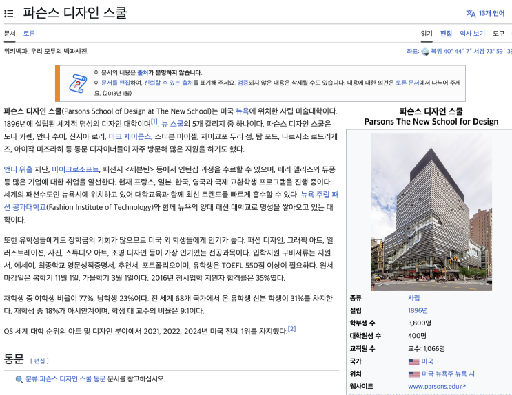 미국 최고 수준 디자인 스쿨 - 파슨스 디자인 스쿨 4년 장학금!!!! 파슨스 디자인 스쿨 매년 25000달러, 총액 100000달러(약 1억5천) 장학금 !! 위키백과- 출처 미국최고 명문 디자인 아트스쿨 파슨스 디자인 스쿨 4년 장학금!!! parsons design school 4년장학금!!!! 매년 25000달러, 총액 100000달러(약 1억5천) 장학금 !!!! FAS 유학팀 임서윤 Penn Poster 축하합니다~! 합격은 결과일 뿐, 과정은 예술입니다. 100% 미국 명문 미대 합격·장학금 실현 프리덤아트스페이스는 이 시대가 요구하는 예술가의 깊이와 태도를 만들어갑니다. <img src="https://blogthumb.pstatic.net/MjAyNTEyMTZfMTAx/MDAxNzY1ODUwNDk0MzQ4.CaCaCFw0KC7Kq3HdtBfXgjLTU03dKw9MFl1yQ4VIPMMg.Fb6laVbxBqvC1Zh0N56VegqpobqIg65yT4N7OHAf5aAg.PNG/%BD%BA%C5%A9%B8%B0%BC%A6_2025-12-16_%BF%C0%C0%FC_11.01.32.png?type=s3" />