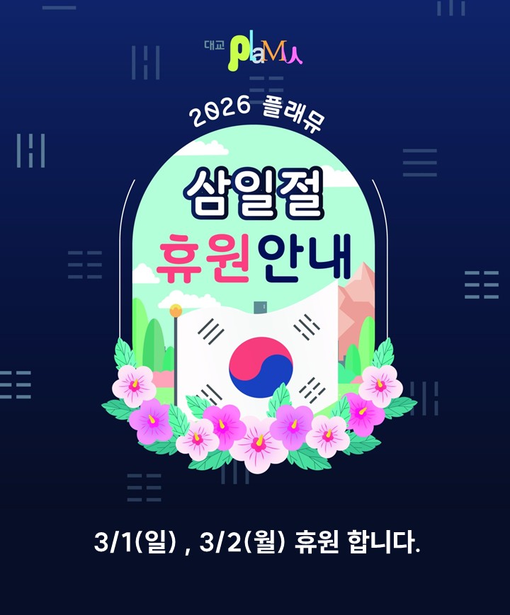 [플래뮤미술학원김포운양] 2026년 3.1절/대체휴무일 휴원안내