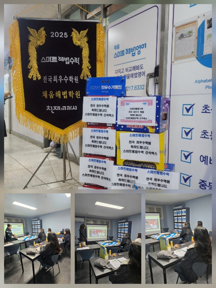 안녕하세요, 스마트해법 서울중부지사입니다. 어제 저녁에는 스마트해법 수학 전국 1등 채움해법학원에서 진행된 ‘학부모 간담회: 중등 수학, 흔들리지 않는 뿌리 만들기!’에 다녀 왔습니다. 간담회에 앞서 2025년 전국최우수 교실 선정 시상식을 진행하였으며, 본사에서 축하의 의미로 보내주신 든든한 간식 박스들 덕분에 더욱 풍성하고 기분 좋은 분위기 속에서 간담회가 시작되었습니다. 왜 '중등 수학'은 채움해법이어야 할까요? 이번 간담회는 특히 예비 중학생과 중등부 학부모님들의 최대 고민인 '중등 수학 꼼꼼히 준비하기'를 주제로 심도 있는 이야기를 나누었습니다. * 변화하는 교육 과정 완벽 분석 - 2....... <img src="https://blogthumb.pstatic.net/MjAyNTEyMThfMTMy/MDAxNzY2MDMyMjMyNTc3.__4iVoLRutLACePBgrPJ8W_B45Vv27UJ13SDtiOAT_Yg.e9Ko5NSg1mCNA3dwQRPpteDIirABj4hdBGsM68PX1iQg.JPEG/900%A3%DF20251218%A3%DF124949.jpg?type=s3" />