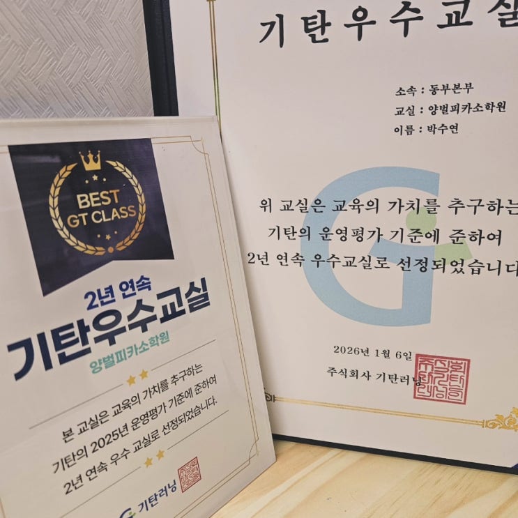 안녕하세요~ 기탄사고력양벌피카소학원 / 양벌초공부방 / 매곡초공부방 입니다^^ 올해도 정말 감사한 소식을 전하게 되었어요. 저희 기탄사고력양벌피카소학원이 2년 연속 ‘우수교실’로 선정되었습니다. 이 결과는 결코 혼자 만들어낸 성과가 아니라, 항상 믿고 보내주시는 학부모님들과 열심히 따라와 준 아이들 덕분이라고 생각해요. 감사의 마음을 전하고 싶어 준비한 작은 정성 2년 연속 우수교실 선정이라는 뜻깊은 순간을 맞아 감사의 마음을 어떻게 전하면 좋을까 고민하다가 주방수건 선물을 준비했어요. 매일 사용하는 생활 속 물건이기에 볼 때마다 따뜻한 마음이 전해졌으면 하는 바람으로 하나하나 정성껏 포장했습니다....... <img src="https://blogthumb.pstatic.net/MjAyNjAyMjdfMjI0/MDAxNzcyMTQ3NzA4NTY4.y_Mx4G3FPNEK3ICMuezELa6pY31Gqkfg3yoJ6HdzV3gg.crGH_75r9B0clEZV8_lR-cX5APMf0PacQ2IehrYL2Pwg.JPEG/900%A3%DFIMG%A3%DF20260226%A3%DF235403%A3%DF724.jpg?type=s3" />