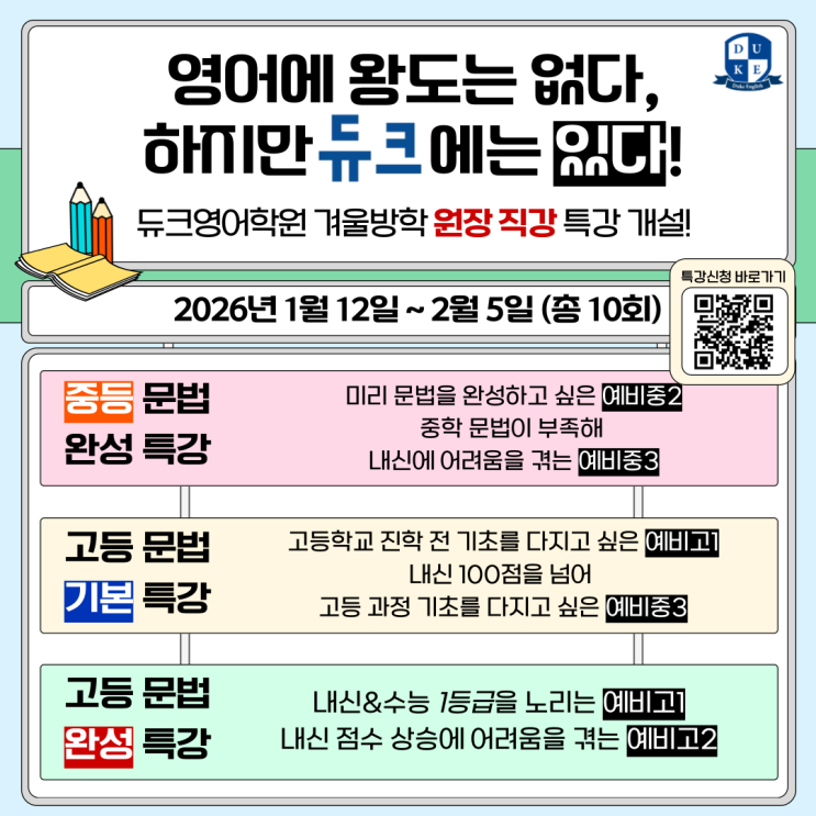 경기광주 태전동 듀크영어학원 2026 겨울방학 특강 안내