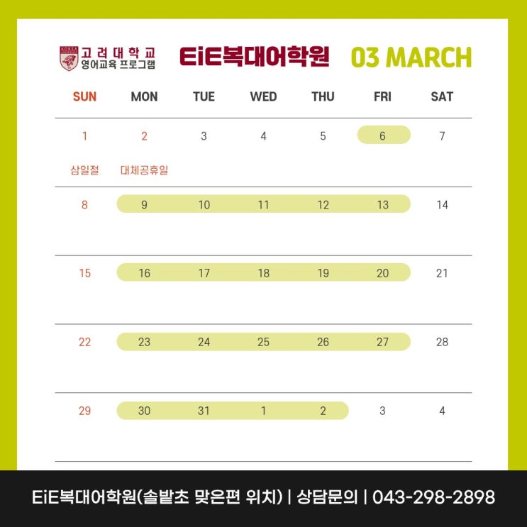 [EiE복대어학원] 3월 세션 안내