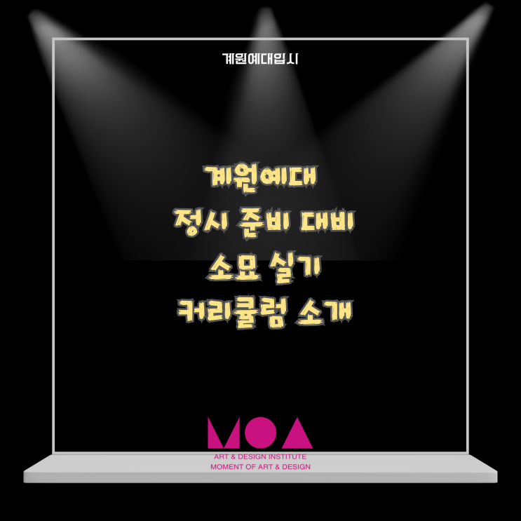 계원예대 정시 준비 대비 소묘 실기 커리큘럼 소개 1. 전형 이해 및 전략 설정 ▶ 수업 목표 ※ 계원예대 정시 실기 출제 의도 정확히 이해 ※ 단어 + 알파 문제를 이미지 사고로 전환하는 훈련의 출발점 마련 ▶ 수업 내용 ◎ 정시 실기 출제 구조 분석 * 단어(개념·상태·행위) + 알파(기호·문자·상징)의 결합 방식 * 묘사력만이 아닌 해석력 + 구성력 중심 평가 ◎ 세로 구도 소묘의 특징 분석 * 상·중·하 공간 분할 전략 * 시선 흐름(위→아래, 개념→결론) ◎ 3시간 실기 시간 배분 전략 * 사고 20분 / 구상 30분 / 묘사 120분 / 정리 10분 2. 단어 해석력 & 알파 확장 훈련 ▶ 수업 목표 ※ 단어를 상징·상태·서사로 해석하는 능력 강화....... <img src="https://blogthumb.pstatic.net/MjAyNTEyMTZfMTQx/MDAxNzY1ODYwMDY2MTEx.YWsIpZWiP-9FJD6X1-7_brRVHLPJD8KNiaGsAWgSp2Mg.1PHYGPlBytFt_AQGajjqy-tXfau4c-sBrj4v4lMrGlEg.PNG/%B0%E8%BF%F81.png?type=s3" />