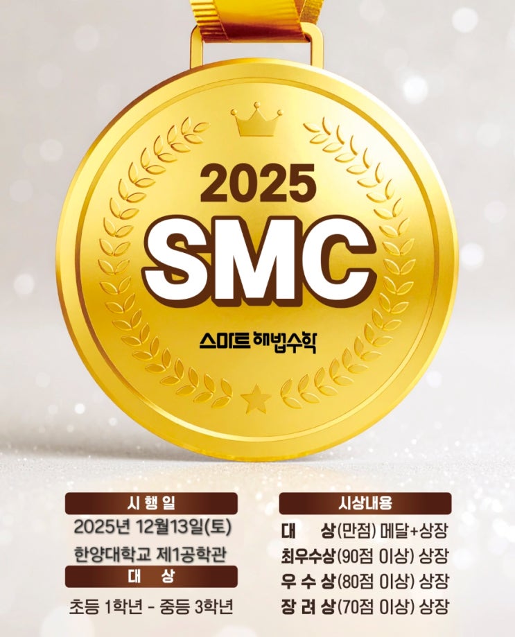 안녕하세요. 마포에서 7년 동안 스마트해법 영어 수학 독서논술 학원을 운영하며 20년째 아이들을 가르치고 있는 진림해법학원 원장 장민숙입니다. 올해도 아이들과 참 의미 있는 하루를 보냈습니다. 2025년 12월 13일 토요일 오전 11시, 서울중부지사 주최로 열린 "스마트수학경시대회(SMC)"는 단순한 실력 점검을 넘어 아이들의 사고력과 학습 태도를 확인할 수 있는 소중한 자리였습니다. 서울중부지사 소속 총 13개 해법수학 가맹점이 참여했고 총 259명의 학생들이 참여했습니다. 학부모 설명회에는 약 150명이 참석하셨습니다. 토요일 오전 아침 일찍 서울중부지사 소속 SMC 참여 원장님들과 모여서 함께 배너를 설치하고 학생들....... <img src="https://blogthumb.pstatic.net/MjAyNTEyMTZfMjAx/MDAxNzY1ODUzMjUwMzk1.nq48VADenmPeu2JbVirvtrbVwNfDL2zBSKN5EG7QcdYg.4Q8nh3pG4bXL3011W9awmuCvn7Frbf_ioo5uvJJT8aQg.JPEG/900%A3%DF1765848503375.jpg?type=s3" />