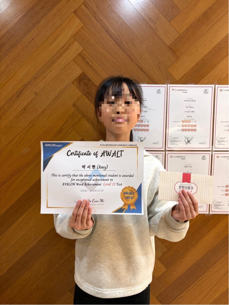 ✨ 아발론 어학원 단어인증제 통과를 축하합니다! ✨ 안녕하세요, 아발론 어학원입니다 이번 단어인증제를 성실하게 준비하고 멋지게 통과한 우리 학생들에게 진심으로 축하의 박수를 보냅니다 단어암기는 단순히 외우는 과정이 아니라, 영어 실력을 탄탄하게 만들어주는 가장 중요한 기초입니다. 이번 인증제를 통해 보여준 여러분의 노력과 꾸준함은 앞으로의 리딩, 리스닝, 라이팅, 스피킹 실력 향상에 큰 밑거름이 될 것입니다 특히 바쁜 일정 속에서도 포기하지 않고 끝까지 해낸 점이 정말 자랑스럽습니다. 작은 성취들이 모여 큰 실력으로 이어진다는 것, 이번 경험을 통해 모두가 느꼈기를 바랍니다 아....... <img src="https://blogthumb.pstatic.net/MjAyNjAzMTdfMTA4/MDAxNzczNzQ0NDkzNTMy.Xjj5Bc9QipodhUm7zRZpOBSkB_wvmoCscghZL134hhgg.1NmrHROSqFW4cO8KCrdVHfhr1Kay-QZjB4S1MwkgHNEg.JPEG/output%A3%DF765622488.jpg?type=s3" />