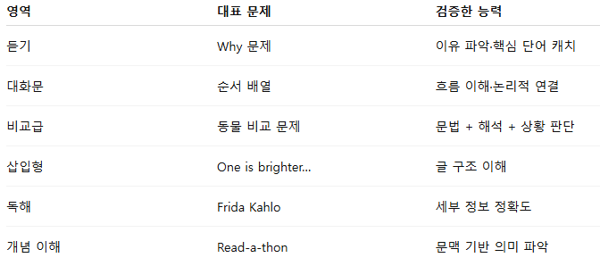 이번 중1 영어 기말고사는 지문 독해력, 비교급 문법, 대화 흐름 이해, 사건 순서 파악 능력을 고르게 평가하는 시험이었습니다. 전체 문항이 많지만, 그중 핵심 출제 의도를 가장 잘 보여주는 문제들만 선별해 분석했습니다. 아래 대표 문제만 이해해도 이번 시험의 전체 흐름과 내년 출제 방향까지 잡을 수 있습니다. PART 1. 듣기 대표 문제 분석 (핵심 유형 1) 문제 ① Why로 묻는 이유 찾기 문제 Q. Why could the boy relax during the relay race? ① He was a fast runner. ② Sports day was fun. ③ His friends cheered for him. ✔ ④ His team won. ⑤ He liked taking photos. ✔ 분석 듣기에서 가장 많이 출제되는 구조....... <img src="https://blogthumb.pstatic.net/MjAyNTEyMDlfMjE2/MDAxNzY1MjY3ODA2MDEz.nDGFB_CF-pNwEL4Ea29LXFRoay_pkdiXhtSPZHs8hu0g.LfnQZfcWZGSb1skkckGlVZOoPpo1TkpFdxMGvX56KGMg.PNG/image.png?type=s3" />